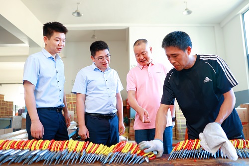 柘荣工行调研柘荣刀剪生产线(闽东日报供图)